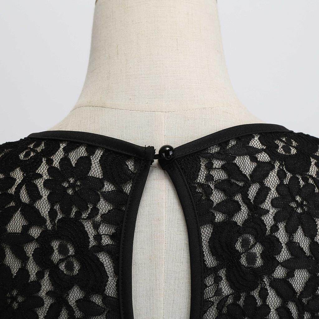 Women Vintage 1950s Retro Sleeveless Lace Splice Solid Party Prom Swing Dress