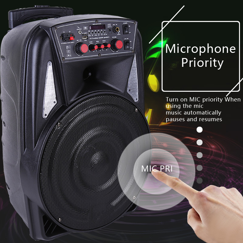 Long-Lasting Rechargeable Battery (2200mA), Charges Through Ac Or Dc With Cable To Charge In The Car (Cable Included).The long-lasting battery provides you 3-4 hours.Bluetooth-Enabled: Pairs Effortlessly To Other Bluetooth Devices, Compatible With All Phones and Tablets.Retractable Handle, Wheels At The Base, Stationary Handle For Easy Transport.Comes with 2 Mic(Choose) And Mic priority function.Powerful 40W-Max 500W Of Output Power, Includes Usb Port And Headphone jack-In Ports.