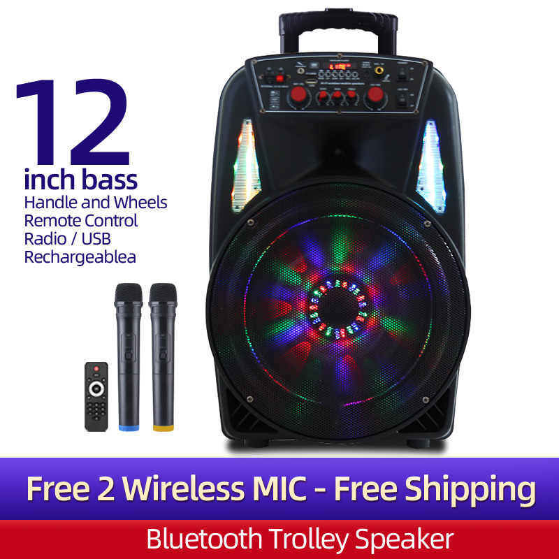 Long-Lasting Rechargeable Battery (2200mA), Charges Through Ac Or Dc With Cable To Charge In The Car (Cable Included).The long-lasting battery provides you 3-4 hours.Bluetooth-Enabled: Pairs Effortlessly To Other Bluetooth Devices, Compatible With All Phones and Tablets.Retractable Handle, Wheels At The Base, Stationary Handle For Easy Transport.Comes with 2 Mic(Choose) And Mic priority function.Powerful 40W-Max 500W Of Output Power, Includes Usb Port And Headphone jack-In Ports.