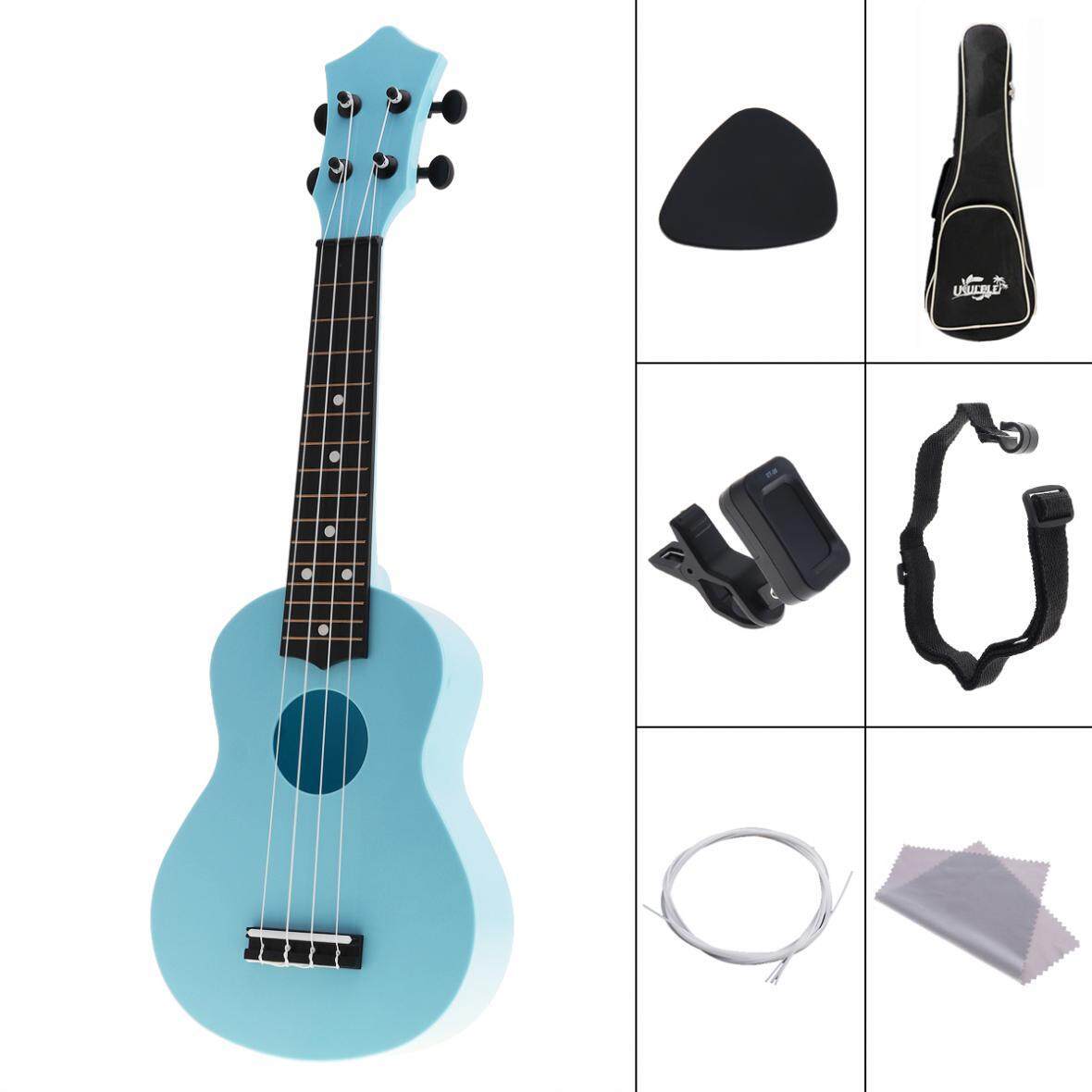 • Features:- 21 inch size, suitable for both kids and music beginner.- Color appearance, more able to attract the attention of children.- Made of plastic, durable.- Colloidal four strings, toughness, safety does not hurt the hand, each string can bring a different tone, to stimulate interest in learning.- Every ukulele sends a guitar picks.- Adjustable string design, different tightness can have different sounds.- Ideal for music beginner.