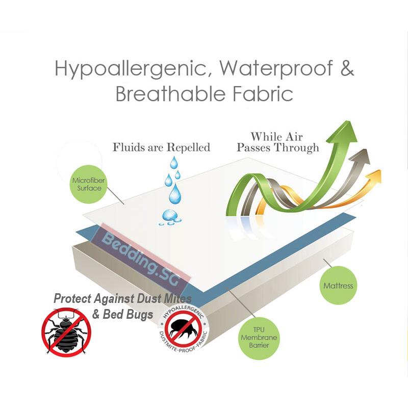 Bedding SG waterproof pillow protector is a great way to protect against dust mites and the allergy caused by dust mites. The TPU coating on the underside prevent dust mites from moving up and down the pillow. Hence, preventing dust mites from infestating within the pillow.