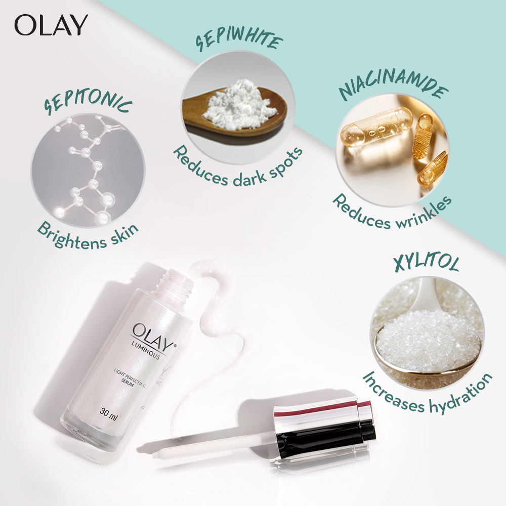 • Olay’s specially designed dropper mechanism enables targeting problem areas.