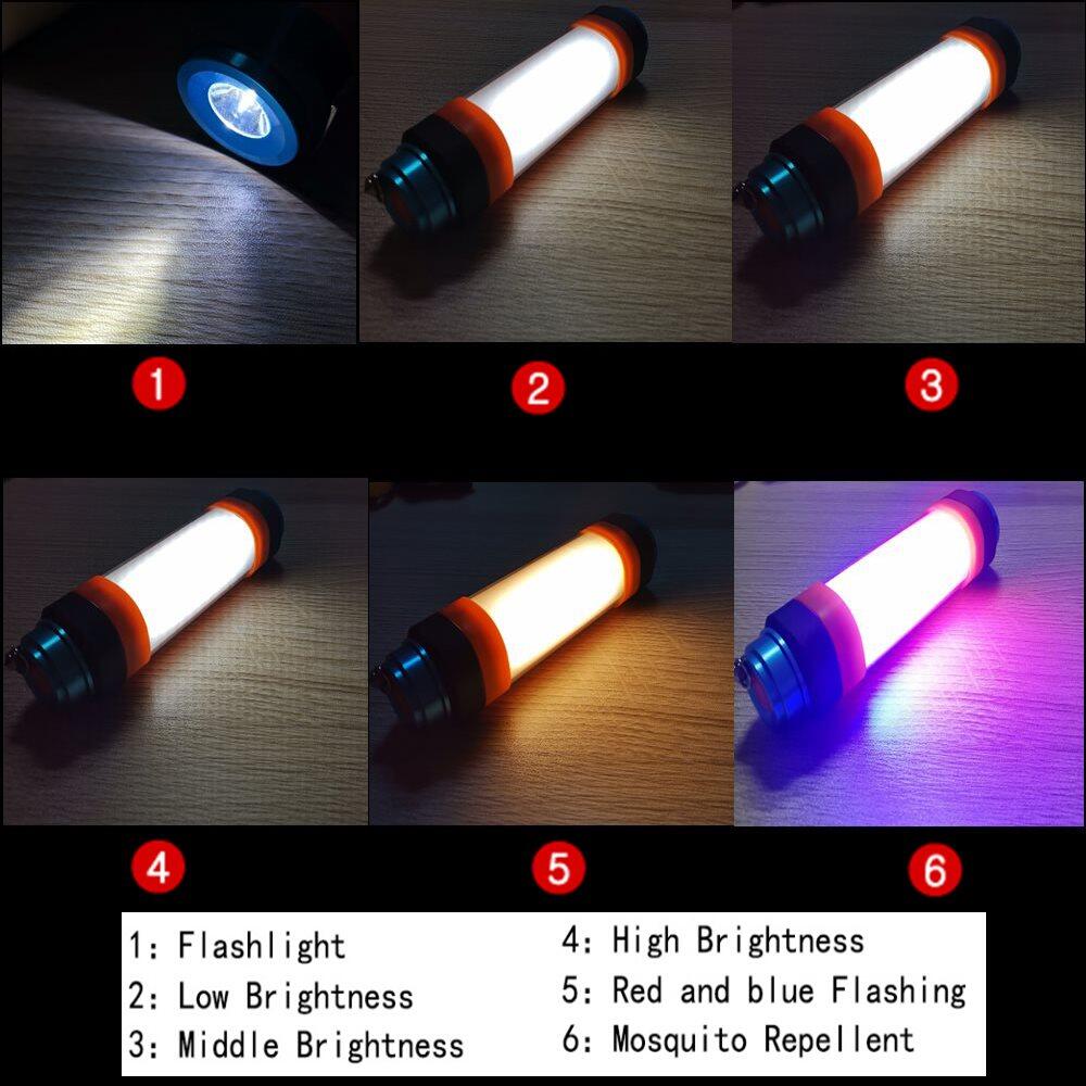 1. Multifunction 6 Modes Working : portable flashlight , 3 type brightness lighting, Red&Blue flashing SOS emergency light, Mosquito repellent