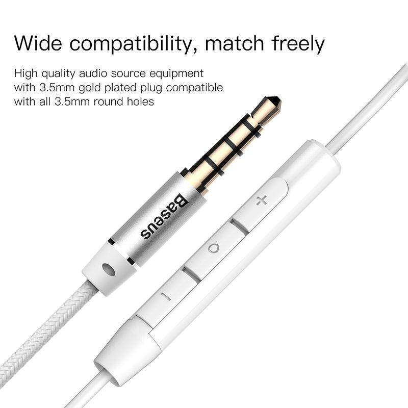 Baseus 6D Stereo 3.5 mm In-ear Earphone Headphones Wired Control Bass Sound Earbuds For Samsung XiaoMi Huawei Vivo appo Phone Sports Wire Control Earphone