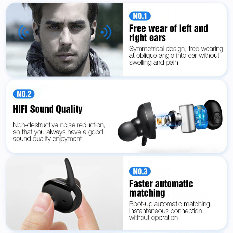 4). Smart Touch Control, just a finger touch can acheive multi functions, including: play & pause, answer & reject phone call, call back, play next song, simple and convenient to use.