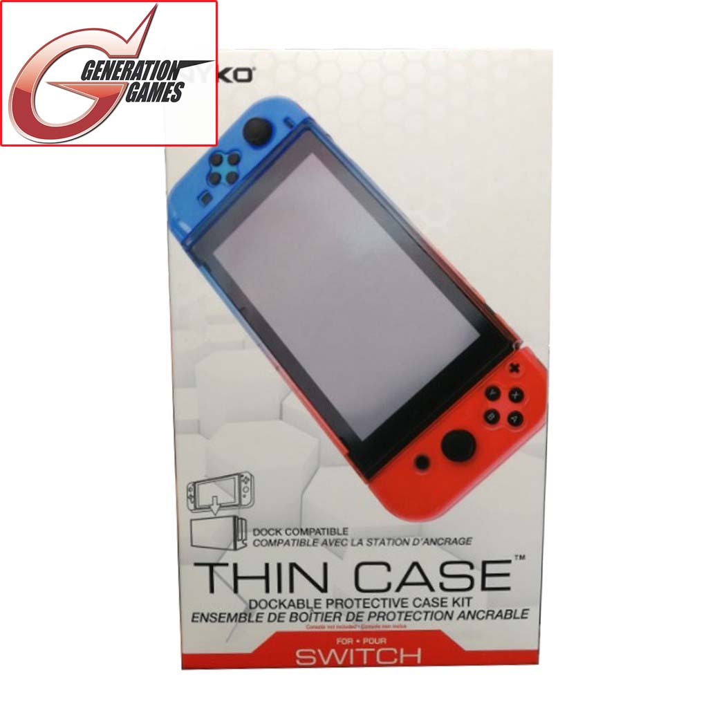 Keep the exterior of the Nintendo Switch™ and Joy-Con™ controllers protected with Nyko's Thin Case. Thin Case goes over the Joy-Cons and Nintendo Switch console to form a protective layer and does not obstruct any buttons, ports or the screen. The included tempered glass screen protector will help guard against damage to the screen. Adding a very minimal increase in size, Thin Case can be left attached when docking the Nintendo Switch. The Joy-Cons can be removed from the console without needing to take off Thin Case.