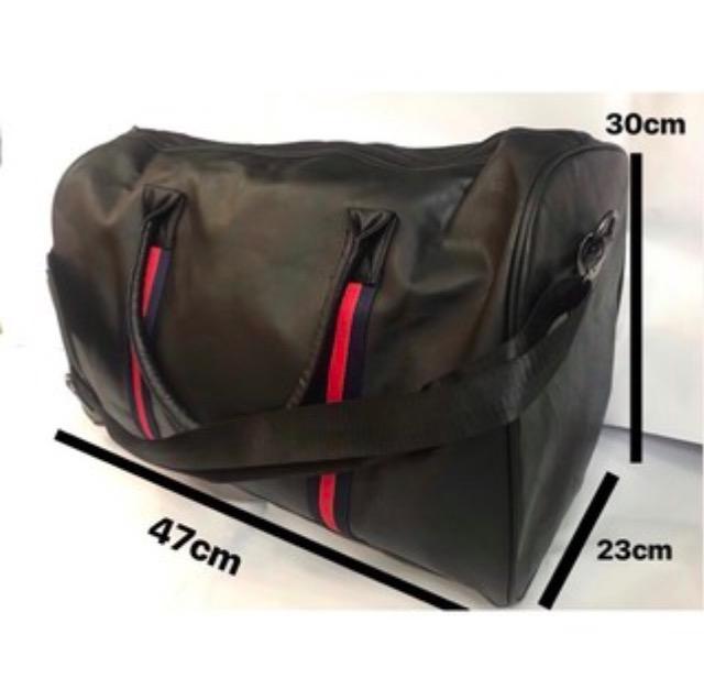Bag Dimension : 30*47*23cm (H*W*L)Bag Capacity : 29~30 LitersBag Weight : 0.80kgBag Material : PVC LeatherStrap Length : 122cmColor Selection : Black#travelbag #shiseido #weekender #bag
