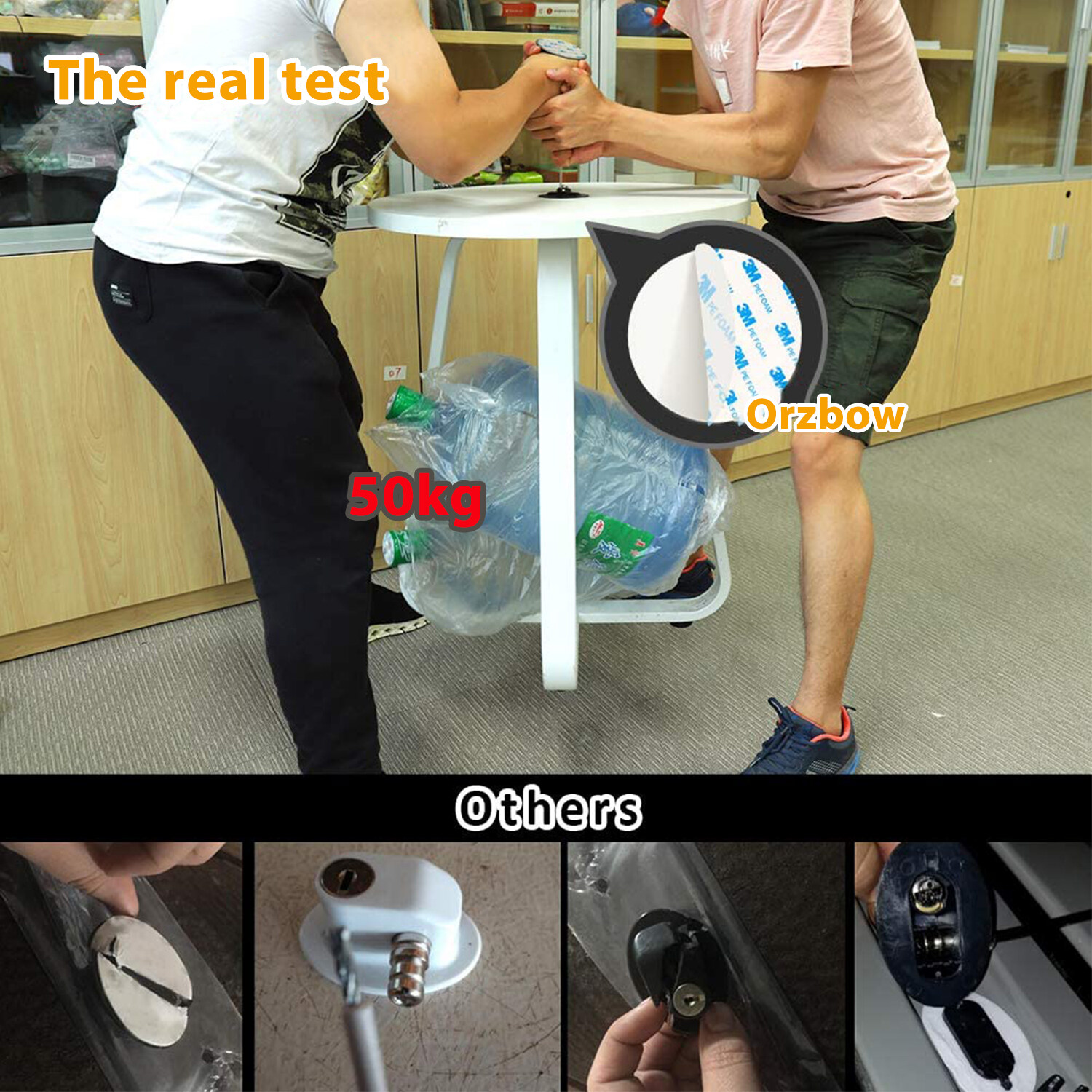 The fridge lock use the stronger 3M adhesive pads (3.2”) that have been tested for strong hold;