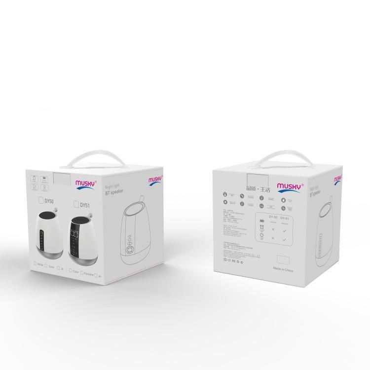MUSKY DY50 Portable Wireless Bluetooth Subwoofer Speaker Night LightProduct DescriptionMUSKY DY50 Portable Wireless Bluetooth Subwoofer Speaker Night LightBluetooth 4.2 connection, widely compatible with smartphones and tablets10W power and built-in 1 speaker deliver fantastic soundBuilt-in microphone for hands-free calling/answeringSupport playing music from TF card / FM play / AuxAir duct design for noise reductionSleep timer: 15 min/30 min/60 minNightlight with touch controller for adjustable brightnessBuilt-in rechargeable 2000mAh lithium ion batterySpecification:Bluetooth version: V4.2+EDRFrequency range: 65Hz-18.5KHzSNR: ≥70dBOutput: 10WSpeaker: 4Ω; 66mmCharging port: Micro USB 5V/1ABattery capacity: 2000mAhCompatible with:iPhone Samsung Huawei Sony etc. Bluetooth-enabled smartphonesPackage included:1 x MUSKY DY50 Portable Wireless Bluetooth Subwoofer Speaker Night Light1 x Charging Cable1 x Aux Cable1 x English & Chinese User ManualAccessory only, other items not includedSpecification:General Certificate CE , ROHSPackage Weight One Package Weight 1.00kgs / 2.21lbQty per Carton 20Carton Weight 19.00kgs / 41.89lbCarton Size 59cm * 53cm * 39cm / 23.23inch * 20.87inch * 15.35inch