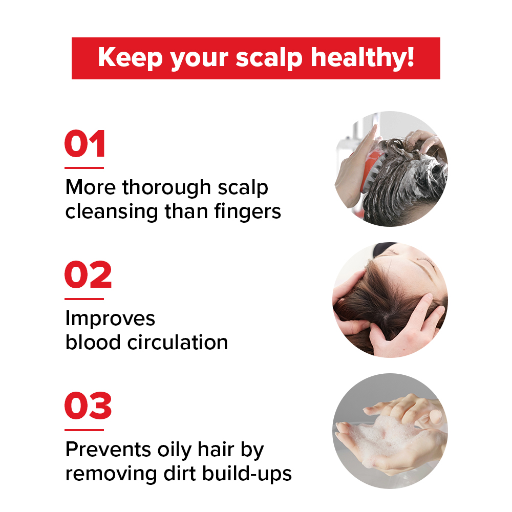 ✔ NO WORRY ABOUT IRRITATION ON THE SCALP!✔ NO WORRY ABOUT MOLD!✔ NO ANY HARMFUL MATERIALS!* Point1. Soft silicone material Made of silicone rather than hard plastic, scalp massage is possible without scaring the scalp.* Point2. 100% Perfect waterproof treatment The surface of the comb is waterproofed, and dandruff, waste, and water are not accumulated and clean.* Point3. Slip + ergonomic design It is easy to use in the bathroom because it is easy to hold in one hand and the size and the child are grin feeling.COLOR: REDProduct Origin: KOREAExpiry: -