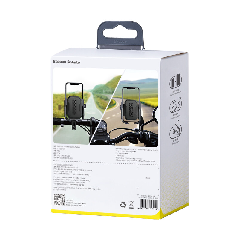 Baseus Motor Cycle Phone Holder Support Moto Bicycle Rear View Mirror Handlebar Stand Mount Scooter Motor Bike Sport Cycle Phone Holder For iphone 11 11 Pro Samsung Note 10 S10 Xiao Mi Realme HuaWei (Suit for Size 4.7-6.5 inch Phone)
