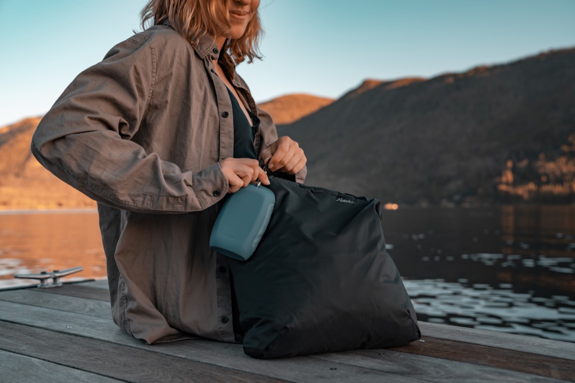 This full-sized shower towel is designed for lightweight, efficient travel. The nanofiber material absorbs 2.3x its own weight in water and dries quickly. An included silicone case with a carabiner makes it easy to attach the towel to the outside of your pack when not in use.