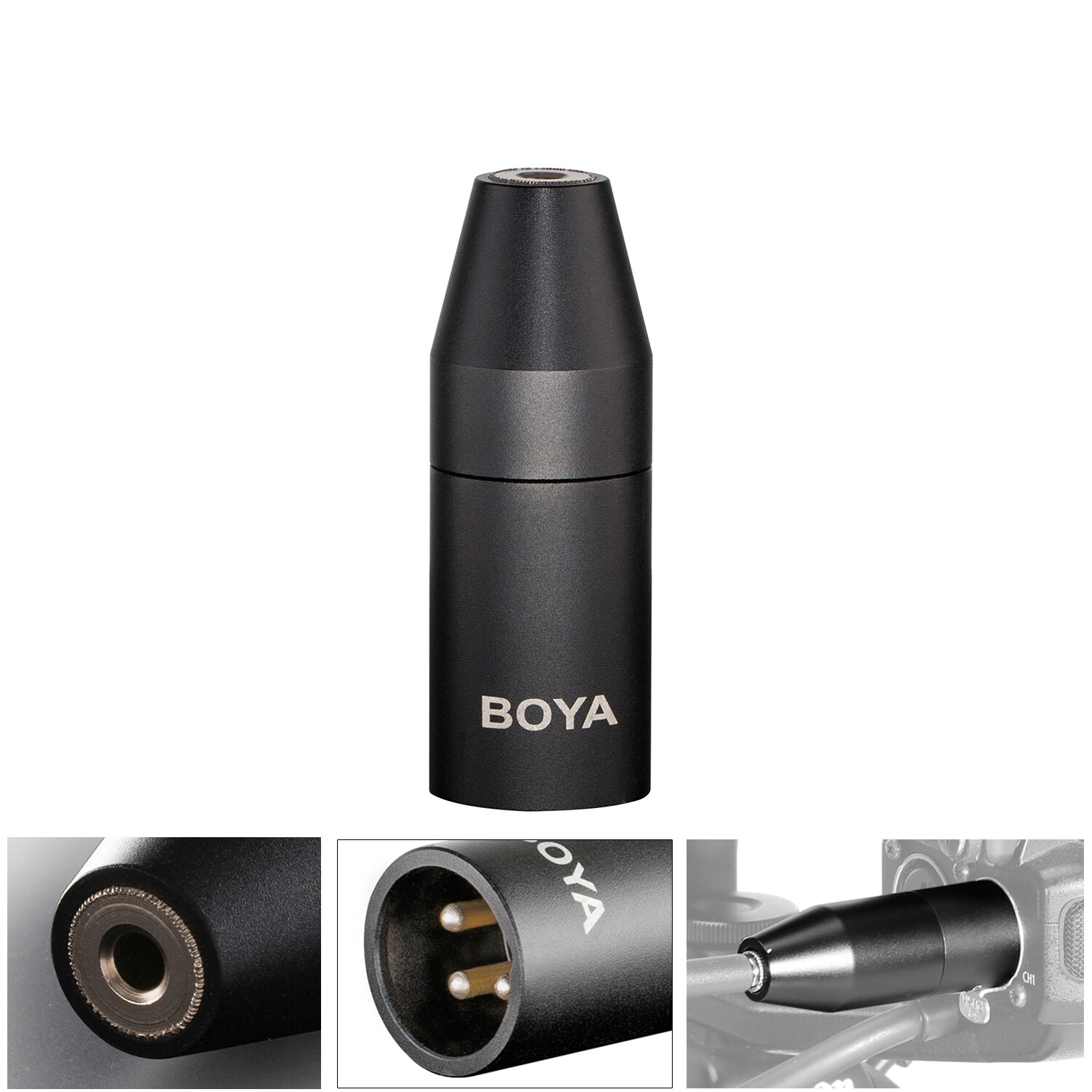 The BOYA 35C-XLR Adapter converts 3.5mm mini jack input to a male XLR output, it allows you to connect a microphone with a mini jack output to a professional mixer, camera, or other device with an XLR input.35C-XLR PRO converts 3.5mm to XLR adapter with power converter.