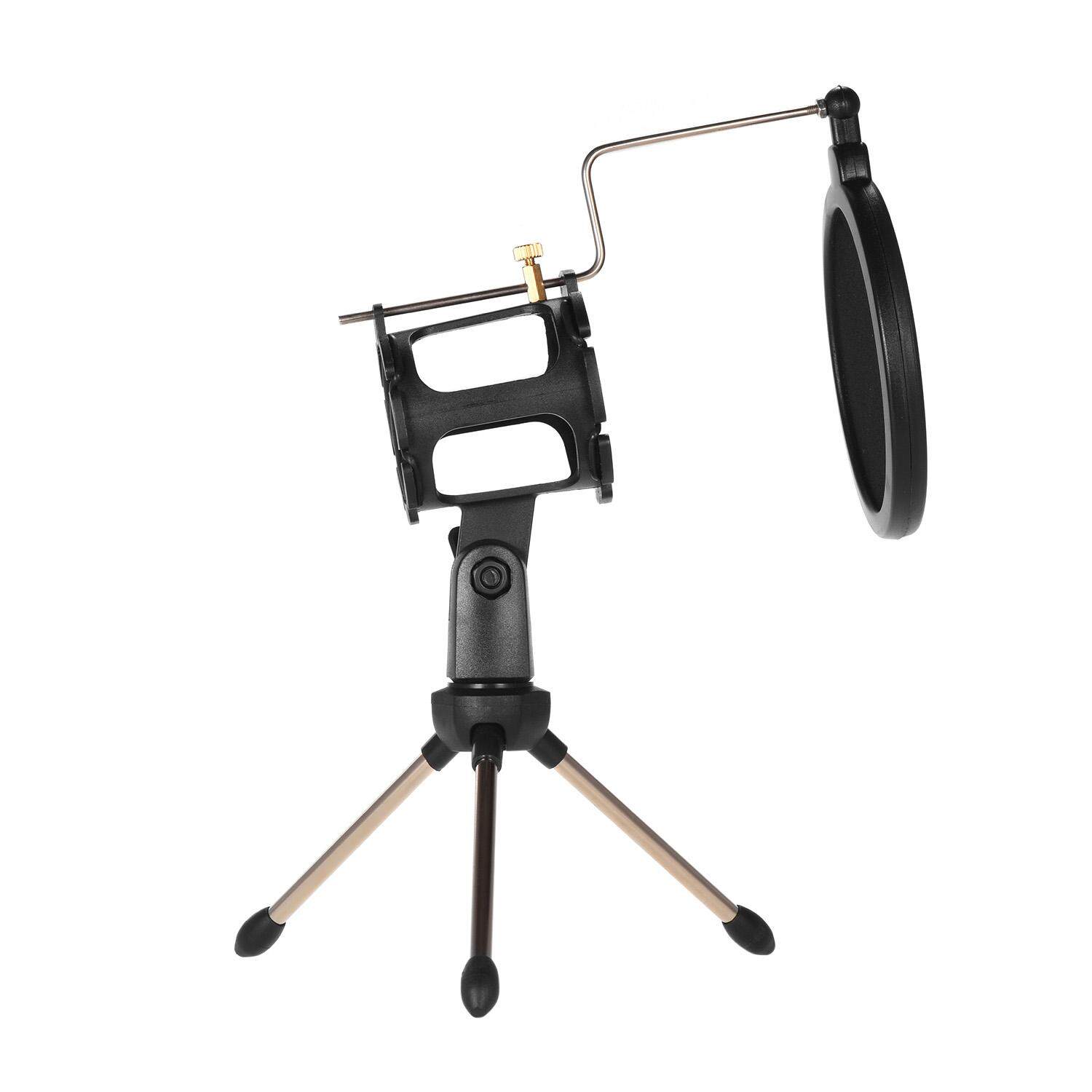 Features: Desktop microphone tripod stand + microphone shock mount holder + microphone pop filter kit.