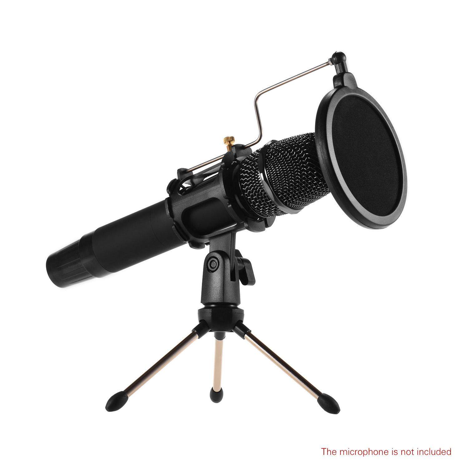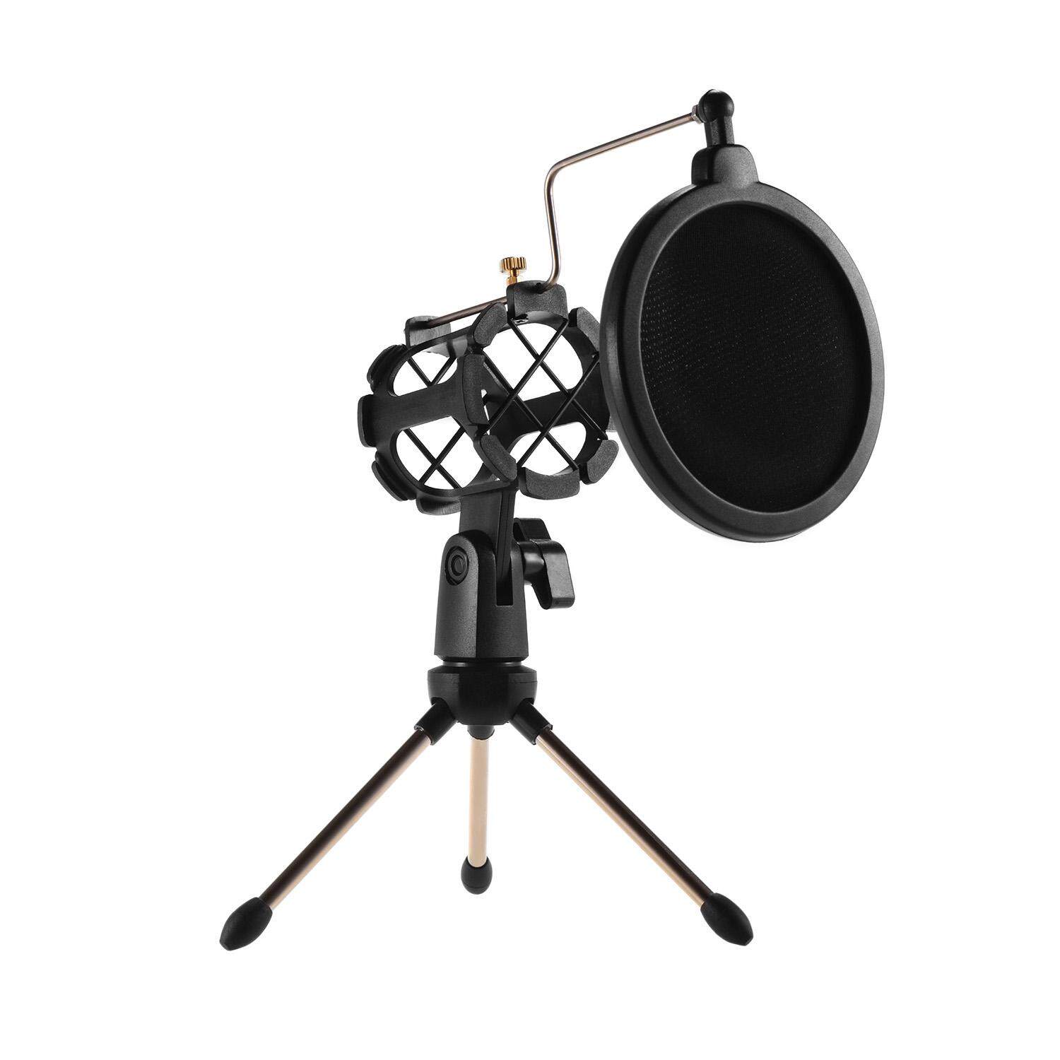 Features: Desktop microphone tripod stand + microphone shock mount holder + microphone pop filter kit.