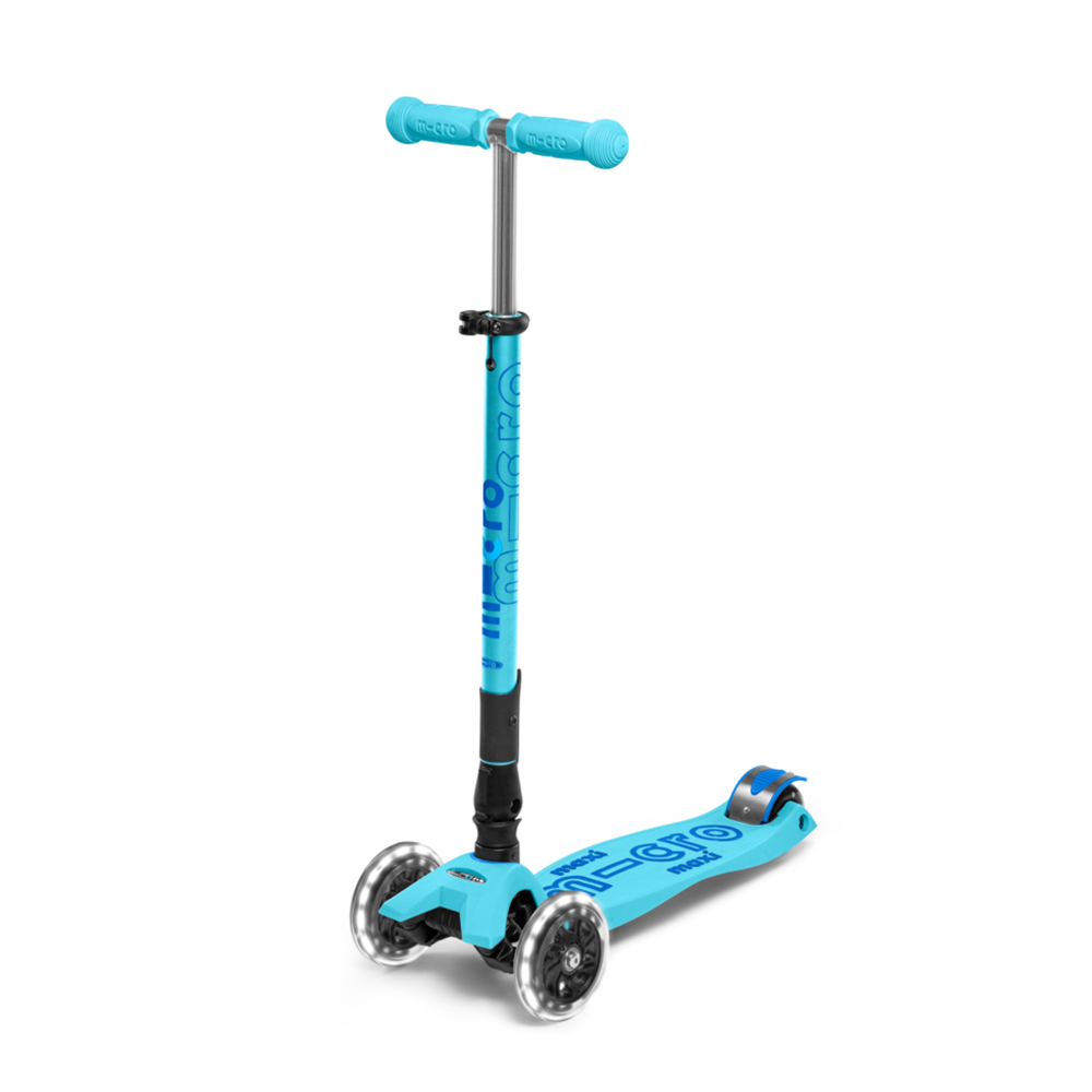 This Maxi Micro from the Deluxe family scores points with two extra features: Firstly, the intuitive folding mechanism ensures that the kickboard can be folded with a simple movement of the hand and stored anywhere. Whether in the boot, under the chair at school or in the locker - there is always room for the Maxi Micro Deluxe Foldable LED. Secondly, the sparkling LED wheels make sure that you can see the kids from a distance, even in the dark. The light is generated by a dynamo mechanism. Thanks to the inductive charging process, no batteries are needed. Furthermore, ABEC 9 ball bearings guarantee highest precision and durability. The illuminated wheels not only look cool but also provide more safety.