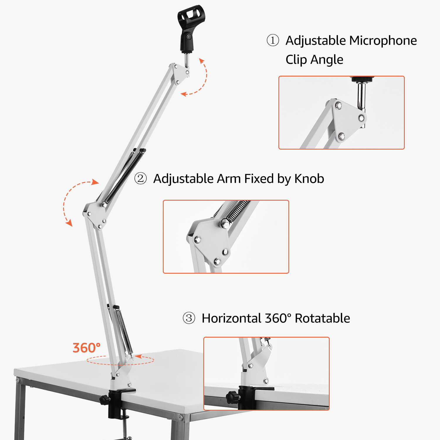 Features: The microphone stand is designed for microphone mounting on table via the mount adapter clipping the edge of desk, as the maximum clamping distance is 5.5cm.