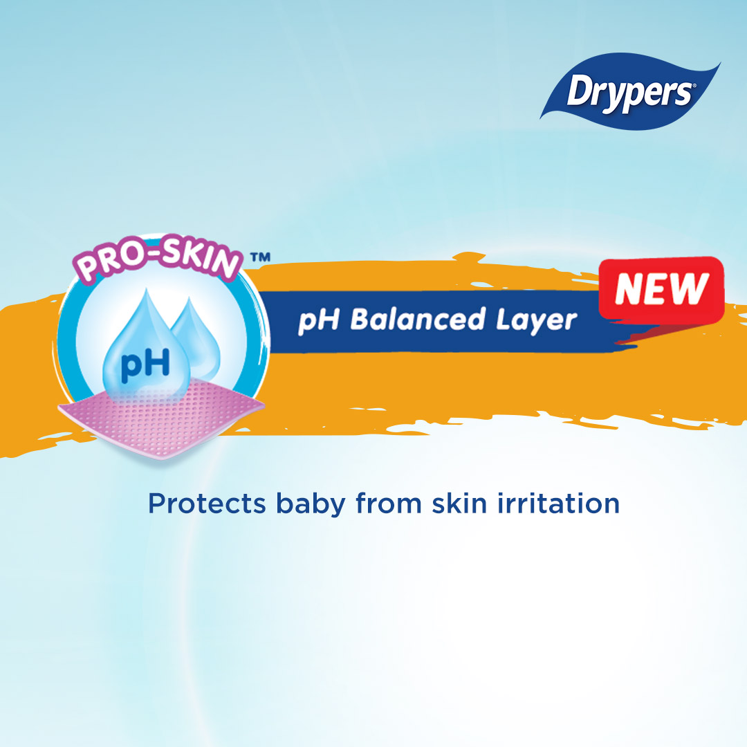 Our NEW Drypers Drypantz with improved DRY & FIT coupled with NEW PRO-SKIN™ pH balanced layer which protects baby from skin irritation. What’s more? It is ECO-GREEN, our commitment to caring for baby & nature.Drypers Drypantz is now with 6 AbsorbDryLayers™ effectively absorbs, distributes, and locks in urine to keep baby’s skin dry and comfortable for up to 10 hours dryness. Each of the layer are enhanced with the NEW PRO-SKIN™ pH Balanced Layer helps to balanced off the urine of baby so to protect baby from skin irritation. Made with 100% Breathable Self-Cool Cover™ that allows air circulation to keep baby’s skin cool and dry. Naturally releasing heat and moisture through micro-pores, even during hot weather. It also come with tailored FIT for babies at different growth stages. CrawlFIT™ for M sized specially designed for babies who are learning to crawl, provides a perfect cuddle fit around baby’s waist & leg for active movement & leakage protection. MoveFIT™ for L-XXL sized provide great fit & leakage protection as baby grows & discovers the world around him/her. NEW Drypers Drypantz is now come with wetness indicator to remind parents to change when it turns from yellow to green! Making diapering worry free; and to focus on child’s development.As our commitment to caring for baby & nature, it is ECO-GREEN! Manufactured without chemicals that are harmful to the environment (MIT/CMIT, BPA, PVC, Dioxin, Heavy Metal, Phthalate and Organotin), eco-friendly ink and USDA certified, both our diaper bag & box can be recycled with the relevant recycle system.