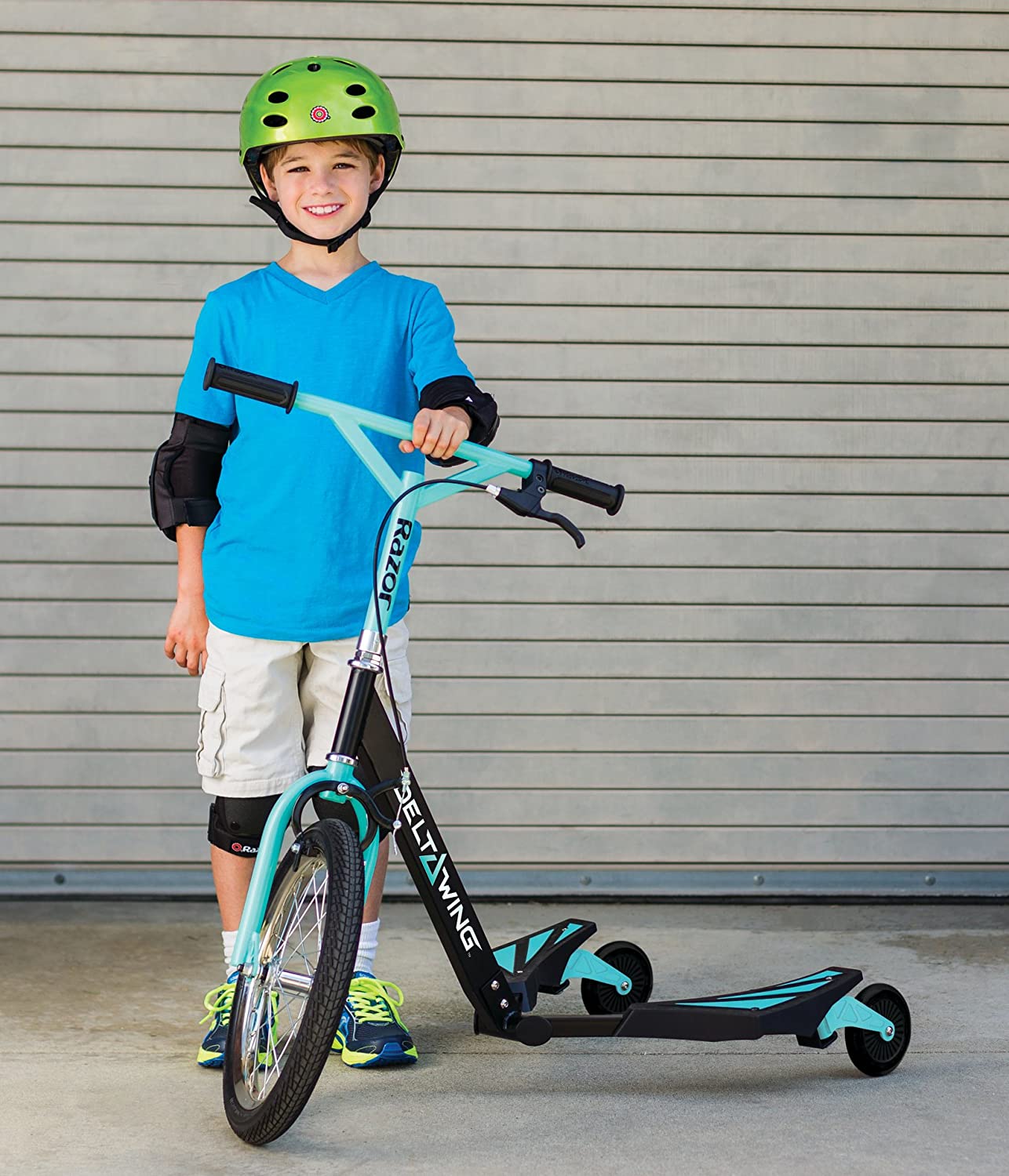 Cleared for Take Off. The all-new Delta Wing steps up to the next level of three-wheel action. Its drop frame, large pneumatic front tire and low-angle rear casters make the self-propelled Delta Wing a powerful yet smooth side-to-side ride, to shred sidewalks and carve up the pavement in style. The Razor Delta wing features a steel frame with high-tech polymer wings, 2 piece "Y" drop handlebar, soft rubber grips, front, hand-operated brake, large 16" (406 mm) pneumatic front wheel, and rear wheels feature low angle trailing casters with large 125 mm wheels for drifting and spinning. Recommended for ages 6 and older and will support a rider up to 143 pounds. The radical new way to ride. Wing it, drift it, spin like crazy. Standing or sitting, these awesome three-wheel machines produce a crazy ride style that's easy to learn. You'll be freestyling in no time. Rip it up with a Razor ride-on. Read and understand the enclosed owner's manual before riding. The buyer and rider of all Razor scooters are responsible for knowing and obeying all local, state and federal regulations regarding the riding and use of scooters.