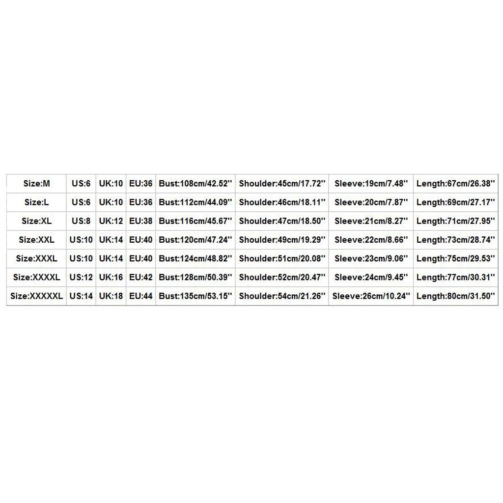 Size:XXXXXL US:14 UK:18 EU:44 Bust:135cm/53.15'' Shoulder:54cm/21.26'' Sleeve:26cm/10.24'' Length:80cm/31.50''