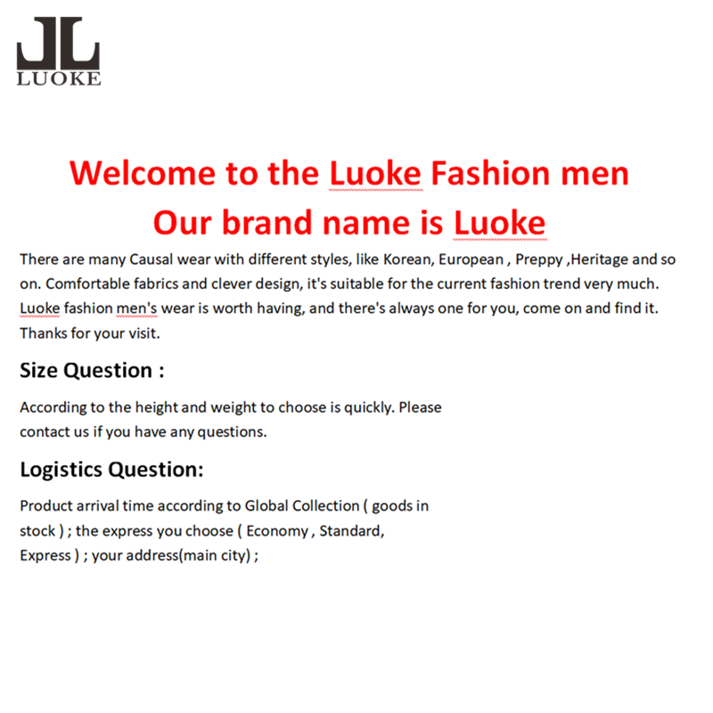 Luoke is committed to creating a variety of men's fashion items, from clothing to accessories, we have always adhered to the principle of high quality and low price while keeping up with trends. If you have any problems with the things you bought in our store, please contact our customer service first, and we will get you the best solution. Choose Luoke, you will not regret it. Finally, I wish you a happy shopping