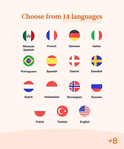 LEARN A NEW LANGUAGE: Choose from 14 languages with Babbel, the #1 top-grossing language-learning app designed with 100+ linguistic experts. Available languages are: Spanish, French, Italian, German, Portuguese, Russian, Polish, Turkish, Norwegian, Danish, Swedish, Dutch, Indonesian, and English
