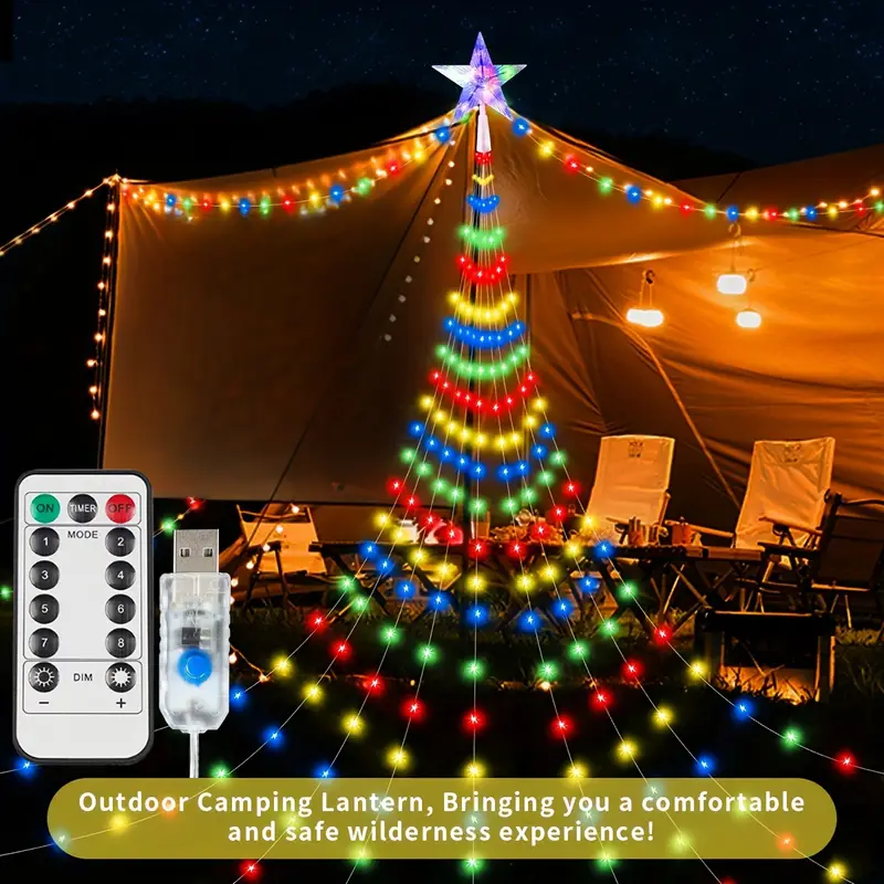 USB Powered 8 Modes Waterfall Tree Lights, Pentagram Star Lights, Indoor & Outdoor Decoration, Patio Wall Tent Party Home Festive Decoration, Halloween & Christmas