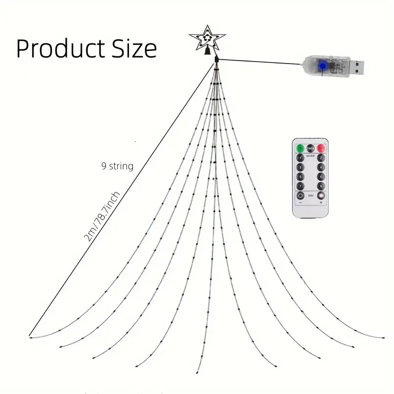 USB Powered 8 Modes Waterfall Tree Lights, Pentagram Star Lights, Indoor & Outdoor Decoration, Patio Wall Tent Party Home Festive Decoration, Halloween & Christmas