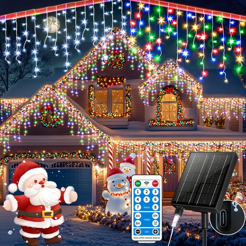 76.4ft 780LED 2500MA Outdoor IP65 Waterproof Christmas Fairy Light String Connectable USB Rechargeable 8 Modes Timed Remote Control Flash Lights For Christmas Roof Eaves Party Wedding (Colorful)