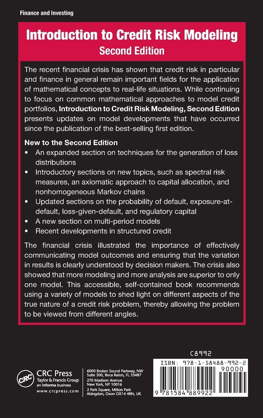 The recent financial crisis has shown that credit risk in particular and finance in general remain important fields for the application of mathematical concepts to real-life situations. While continuing to focus on common mathematical approaches to model credit portfolios, Introduction to Credit Risk Modeling, Second Edition presents updates on model developments that have occurred since the publication of the best-selling first edition.