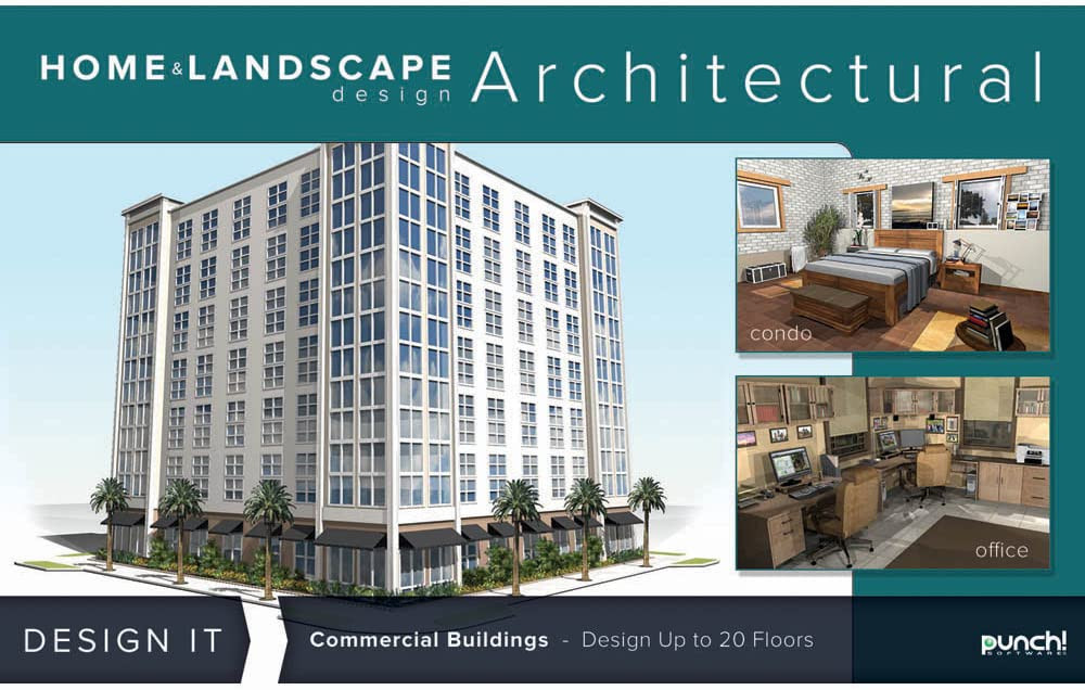 Punch! Home & Landscape Design Architectural Series v19 is a powerful home and landscape design program developed for the architect or designer who wants professional-level features, tools, and presentation capabilities. This complete home update and landscape design software suite combines the most materials, tools, textures, furnishings, accessories, and photorealistic visualization that make architectural design projects a stunning reality. Quickly update or design entire homes and commercial buildings; renovate, redecorate, remodel, landscape; create outdoor living spaces, decks, patios, pools and get fast, professional results with the user-friendly interface. This latest version includes new design tools and updated features for an easier and more efficient design process along with thousands of kitchen and bathroom accessories, paints, lighting, objects, and tips for "Building Green" with green objects and materials for eco-friendly construction.