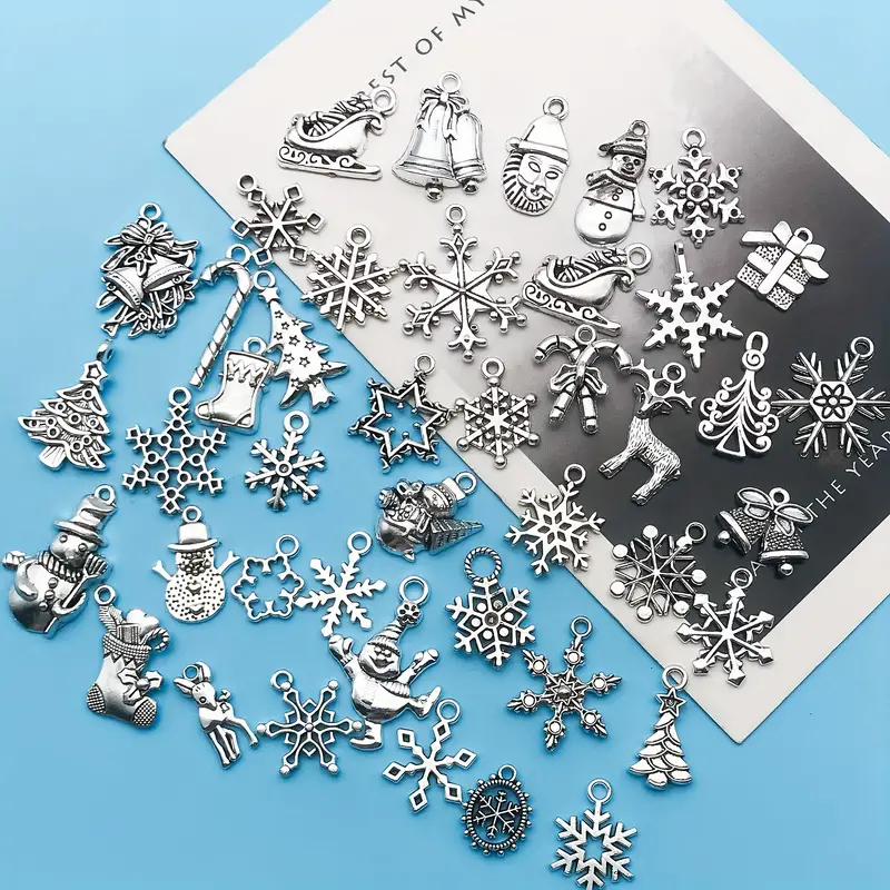 Christmas Tree Christmas Stocking Snowman Bell Sleigh Reindeer, Snowflake Design Pendants DIY Necklace Bracelet Handcraft Accessories for stocking stuffers