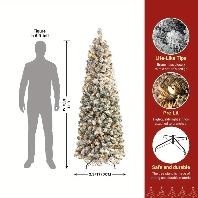 Flocked Artificial Christmas Tree with Warm White Lights, Full Branch Tips, Hinged Design for Easy Setup - Perfect for Holiday Decor, 6.5FT, Green
