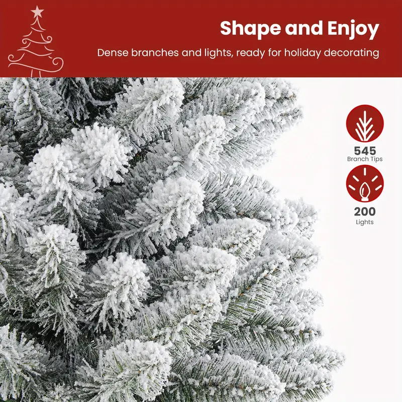 Flocked Artificial Christmas Tree with Warm White Lights, Full Branch Tips, Hinged Design for Easy Setup - Perfect for Holiday Decor, 6.5FT, Green
